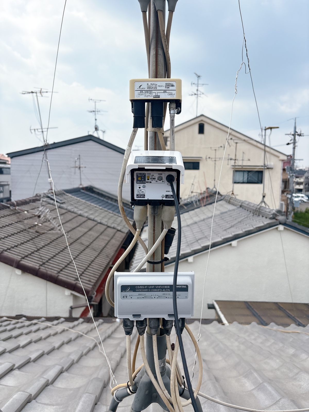 工事内容 | ■施工内容 アンテナ改修工事 ■施工場所 大東市三箇 ■施工日時 2025年8月26日 ■施工の背景・お客様のご要望 先日の雷雨で雷が落ちてからTVが映らなくなったとのことで、アンテナの改修をご依頼いただきました! ■施工内容の詳細 雷によって破損した箇所の調査 破損した物を新しいものに取替 ■施工時間 約2時間程度 ■スタッフのコメント 破損しているものが複数あり、調査に時間がかかってしまいました・・・。 破損していないものもすべて取替することは容易ですが、少しでもお安くするために破損個所の特定をさせていただきました! 結果、地上アンテナ自体は問題なかったのですが、BSアンテナが破損し、ブースターと分配器も不自然な挙動をしていたため、BSアンテナ・ブースター・屋外分配器の3点をお取替えさせていただきました! 無事にすべてのお部屋で見られることを確認し、大変喜んでいただきました! 雷雨の翌日朝にご依頼いただき、当日に下見し翌日に施工させていただきました! ご近所さんでご依頼をいただいたので早めに対応できて良かったです〇 |