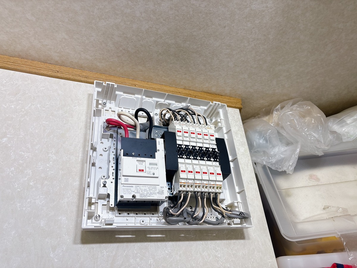 | 工事内容 | ■施工内容 分電盤取替工事 ■施工場所 東大阪市中石切町 ■施工日時 2025年9月30日 ■施工の背景・お客様のご要望 長くお住まいになられているご自宅の分電盤が古いとのことでご依頼をいただきました! ■施工内容の詳細 既存 分電盤 取り外し、廃棄 新品 分電盤 取付、動作確認 停電作業等 ■施工時間 約1時間程度 ■スタッフのコメント 作業中も軽く雑談も交わし、とても気を遣っていただきとても作業しやすかったです〇 大変喜んでいただけてうれしく思います! また何かありましたらお気軽にご相談ください! 分電盤の蓋を付けた写真撮り忘れました・・・。 しっかり蓋も取り付けて、縁のアラは極力隠すように取付しました! |